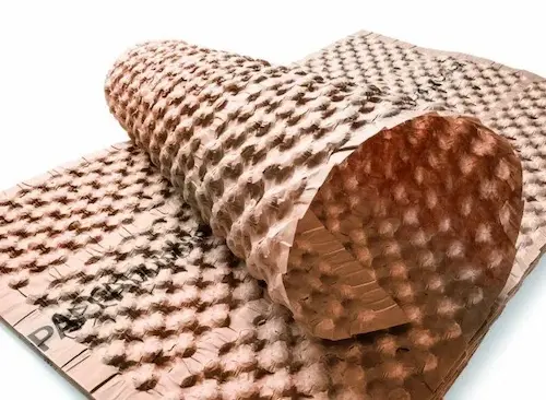 PAPERbubble darbe emici kağıt paketleme malzemesi, balonlu naylon (pat pat naylon) ambalaj malzemesinin kağıt bazlı, çevre dostu alternatifidir. Geleneksel balonlu naylonun plastik içeriğine karşılık, PAPERbubble ambalaj kağıdı tamamen geri dönüştürülebilir kraft kağıttan üretilir ve yüzeyinde küçük hava kabarcıkları bulunan özel bir yapıya sahiptir. Bu kabarcıklar, ürünlerin paketleme sırasında aldığı darbeleri absorbe eder, çevre dostu kargo paketleme çözümleri içinde ilk sıralarda gelir, mükemmel koruma sağlar.