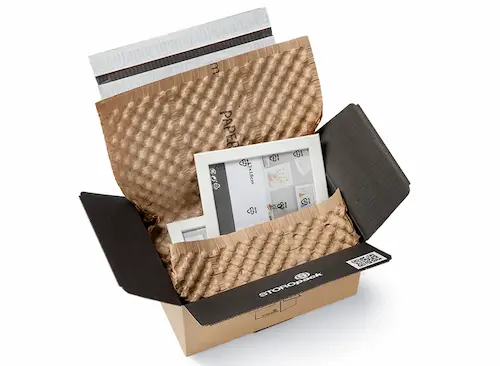 Bunun yanında PAPERbubble balonlu kağıt ambalaj, ürünlere koli içinde zarif ve benzersiz bir görünüm kazandırmasıyla, son kullanıcılar için de olumlu ve unutulmaz bir koli açma deneyimi yaşatır. 580 mm x 380 mm ölçülerinde kullanıma hazır, perfore kağıt tabakalar, özel olarak tasarlanmış bir kartonda ve maksimum esneklik sunan, kullanıcı dostu ve sürdürülebilir paketleme ünitelerinde sunulur ve tabakaların doğrudan paketleme istasyonunda rahat ve ergonomik bir şekilde uygulanmasına izin verir.